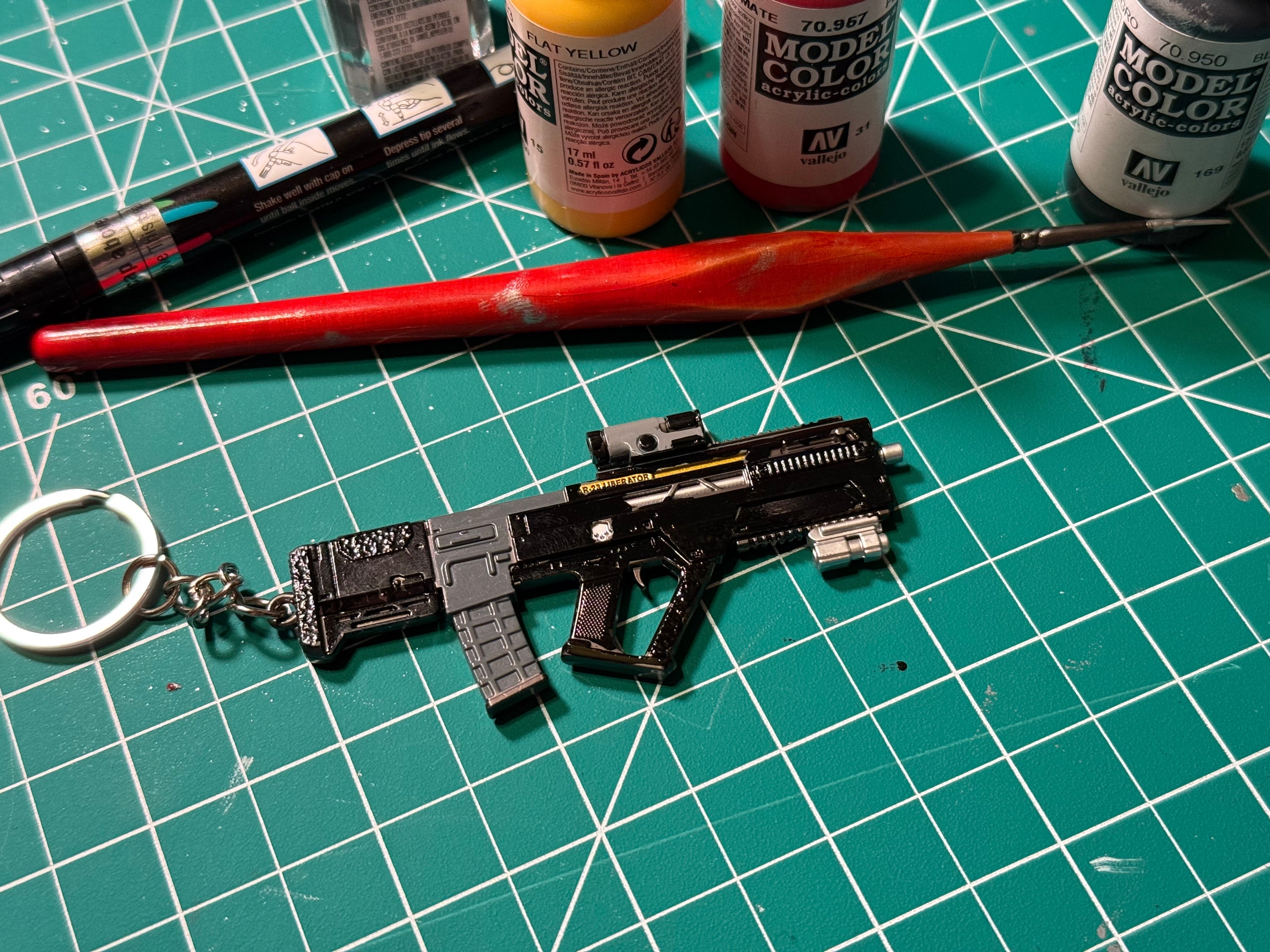 Yes, the keychains and gun displays are all hand painted. The keychains I use a mixture of paint markers, air brush and hand brushes to achieve the end result. The gun displays I use an airbrush and hand brush. No item will ever look exact.